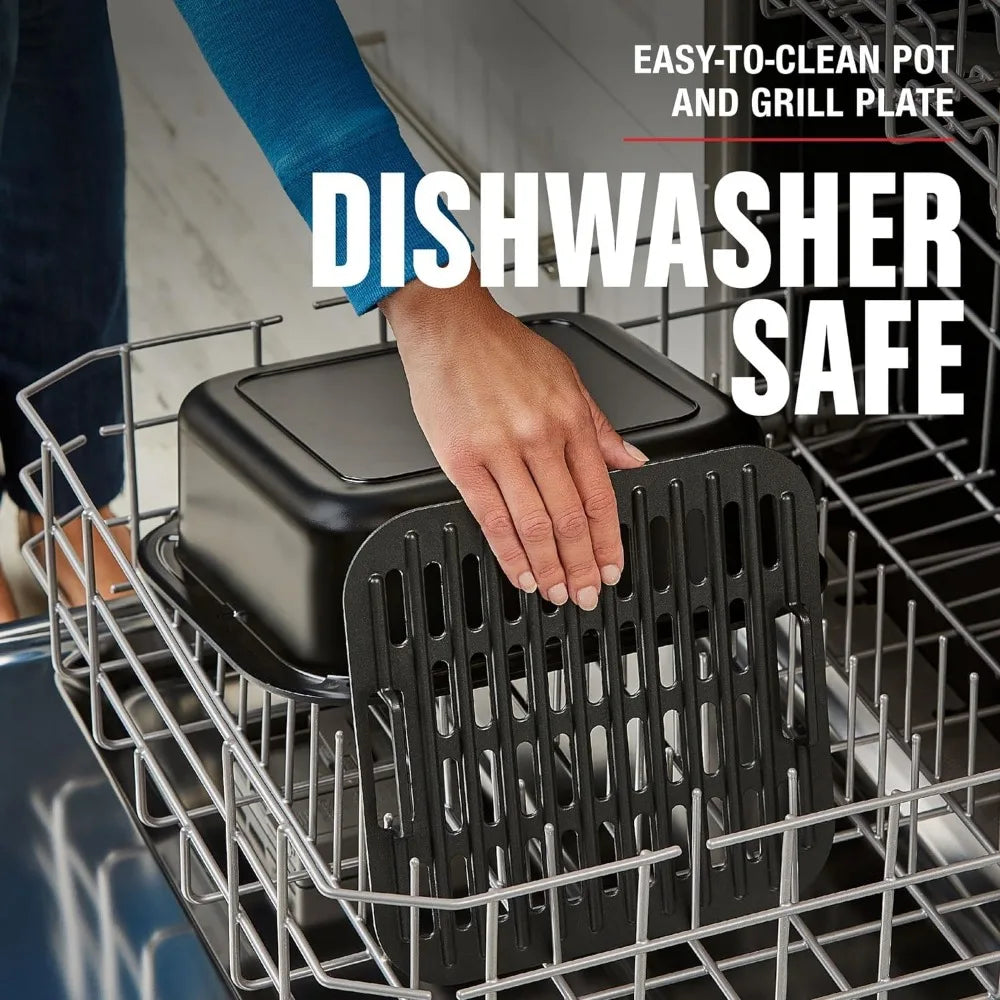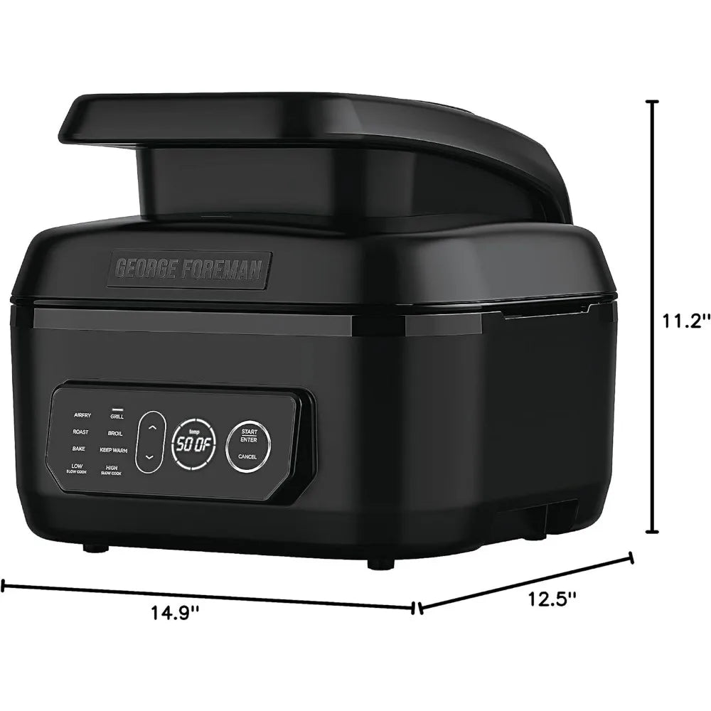 7-in-1 Electric Grill with Air Fry Technology, Adjustable Temperature, Removable Nonstick Grill Plate and Drip Tray