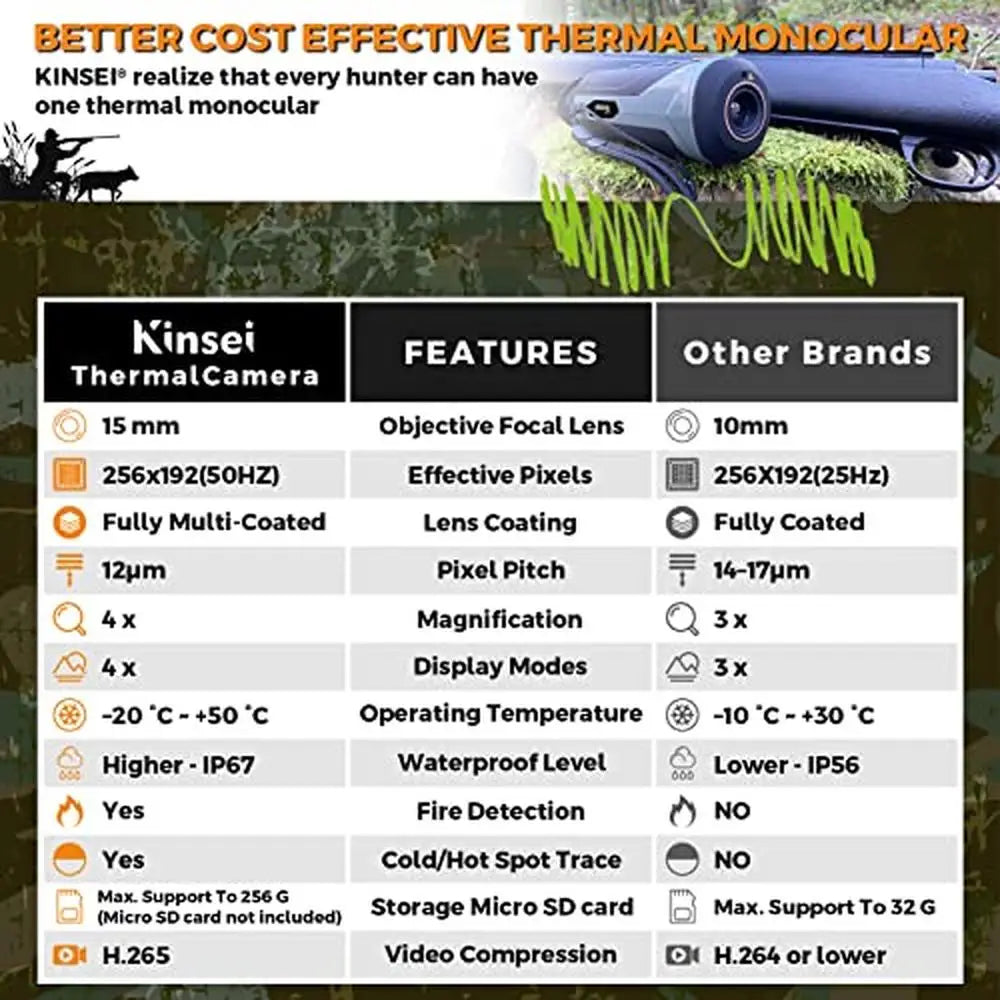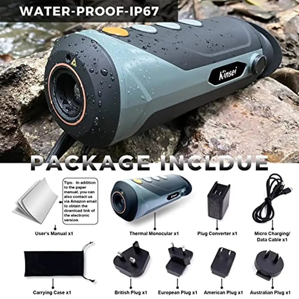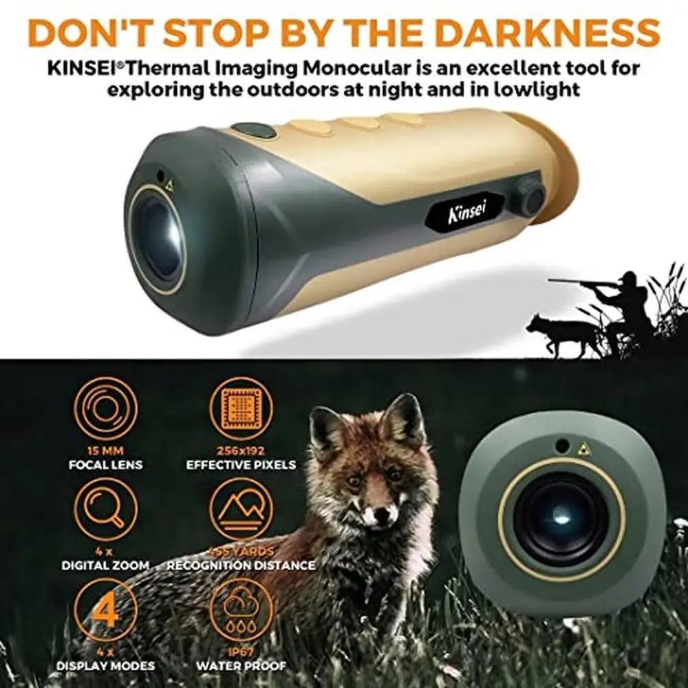 Kinsei Thermal Imaging Monocular Night Vision 4X Zoom 256x192 Pixels 455yd Vehicle Recognition 175yd Animal Recognition L-Diopter